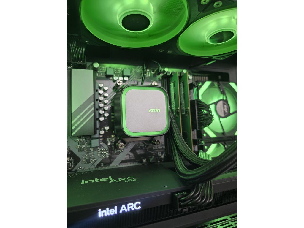 Specifikace:Procesor - Ryzen 5 8400FGrafická karta - Intel ARC B580 12GBOperační paměť - 2x8GB DDR5 6000MhzNVMe SSD - 512GB Apacer AS2280Q4XZákladní deska - Gigabyte B650M D3HP (Bios F39)Chlazení - MSI MAGCore 240MM ARGBZdroj - Gigabyte P650SS (80+ Silver, 650W) Skříň - DarkFlash ARC1 (nastavitelná barva podsvícení)OS - Windows 11 PRO s licencí