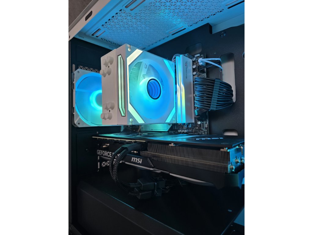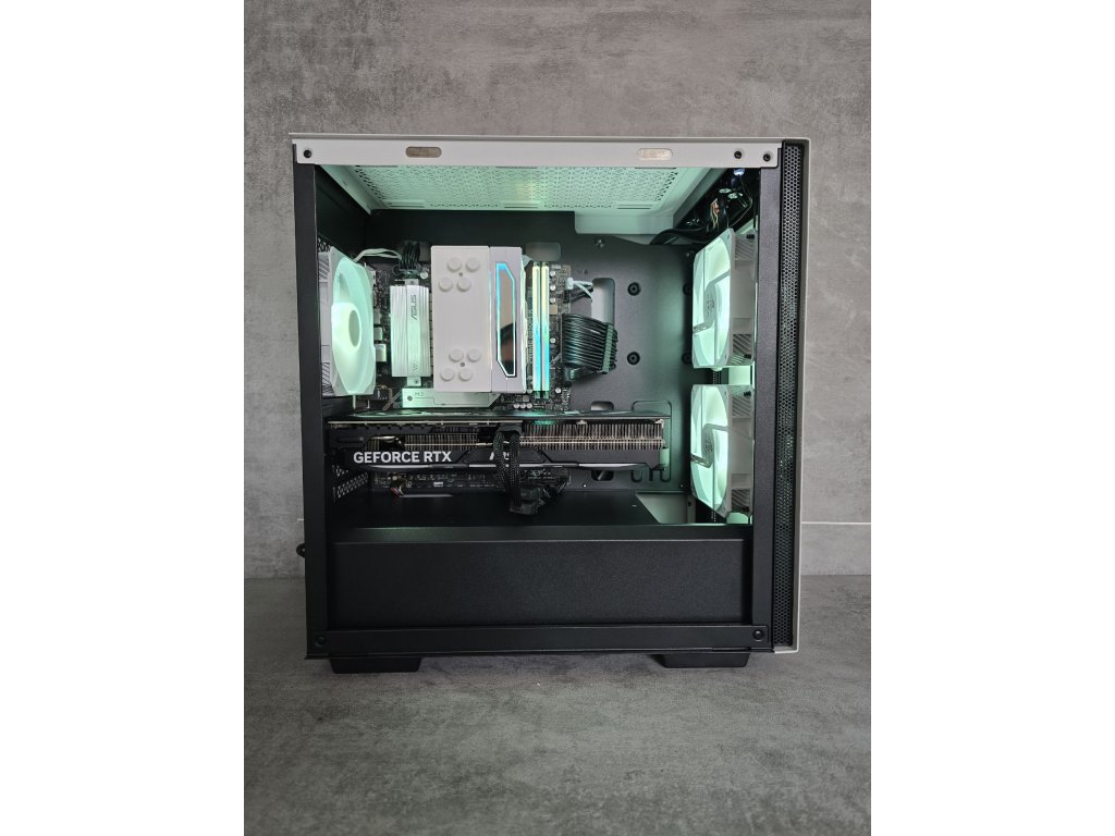Specifikace:Procesor - Ryzen 5 7500FGrafická karta - RTX 4070 Ti 12GBOperační paměti - 2x16GB DDR5 6000MhzNVMe SSD - Crucial P3 2TB Základní deska - Asus Prime B850M-KChlazení - IDCooling WhiteZdroj - Corsair RM750x (750W, 80+ Gold, modulární)Skříň - DeepCool Macube 110 WH (Osazena 3x120mm ASUS ROG ARGB ventilátorem)Operační systém - Windows 11 PRO v četně licencePočítač je řádně otestovaný a připravený k použití.