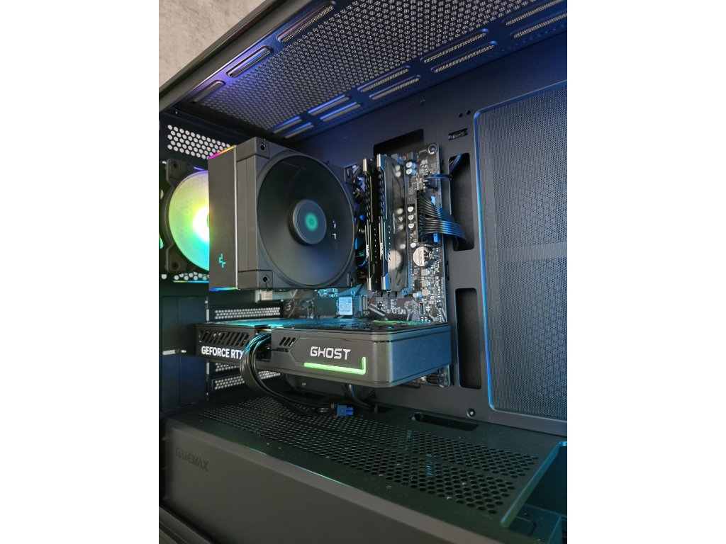 Specifikace:Procesor - Ryzen 7 5700Grafická karta - nVidia RTX 5060 8GBOperační paměti - 2x16GB DDR4 3200MhzNVMe SSD - Samsung 1TBZákladní deska - Gigabyte B550M DS3H R2 WiFi (podpora WiFi a BT připojení)Chlazení - DeepCool AK400 Zdroj - ADATA PROBE 600W (80+ Bronz)Skříň - Gamemax Defender MESH ARGB (plně nastavitelná barva podsvícení) Operační systém - Windows 11 PRO v četně licence